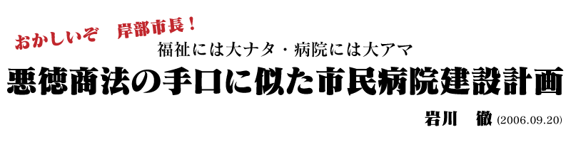 医療の専門家でもある岸部市長の説明に、議会も市民も丸め込まれてしまったのです。口車に乗せられたというのが当たっているかも知れません。