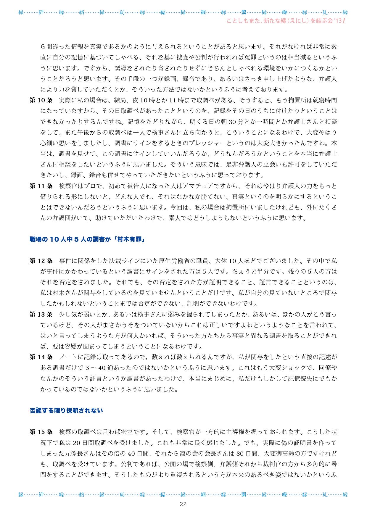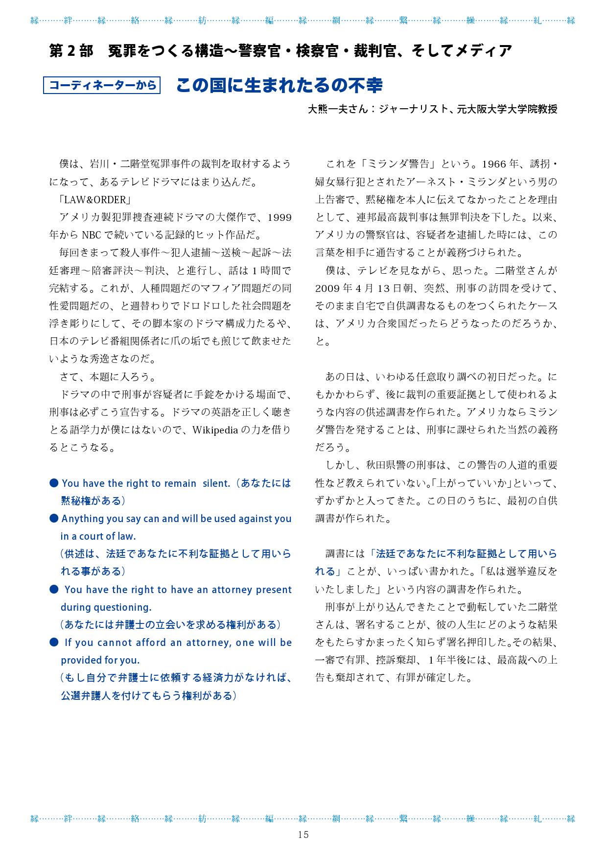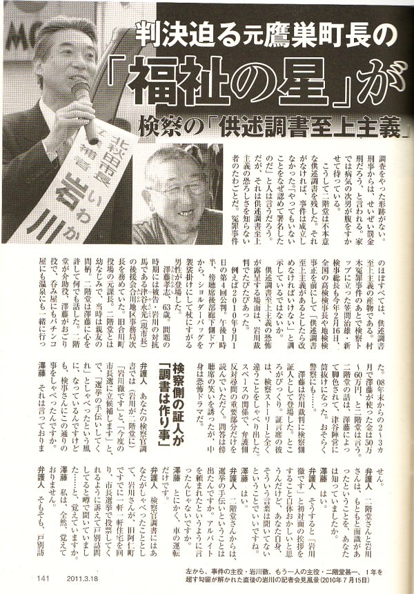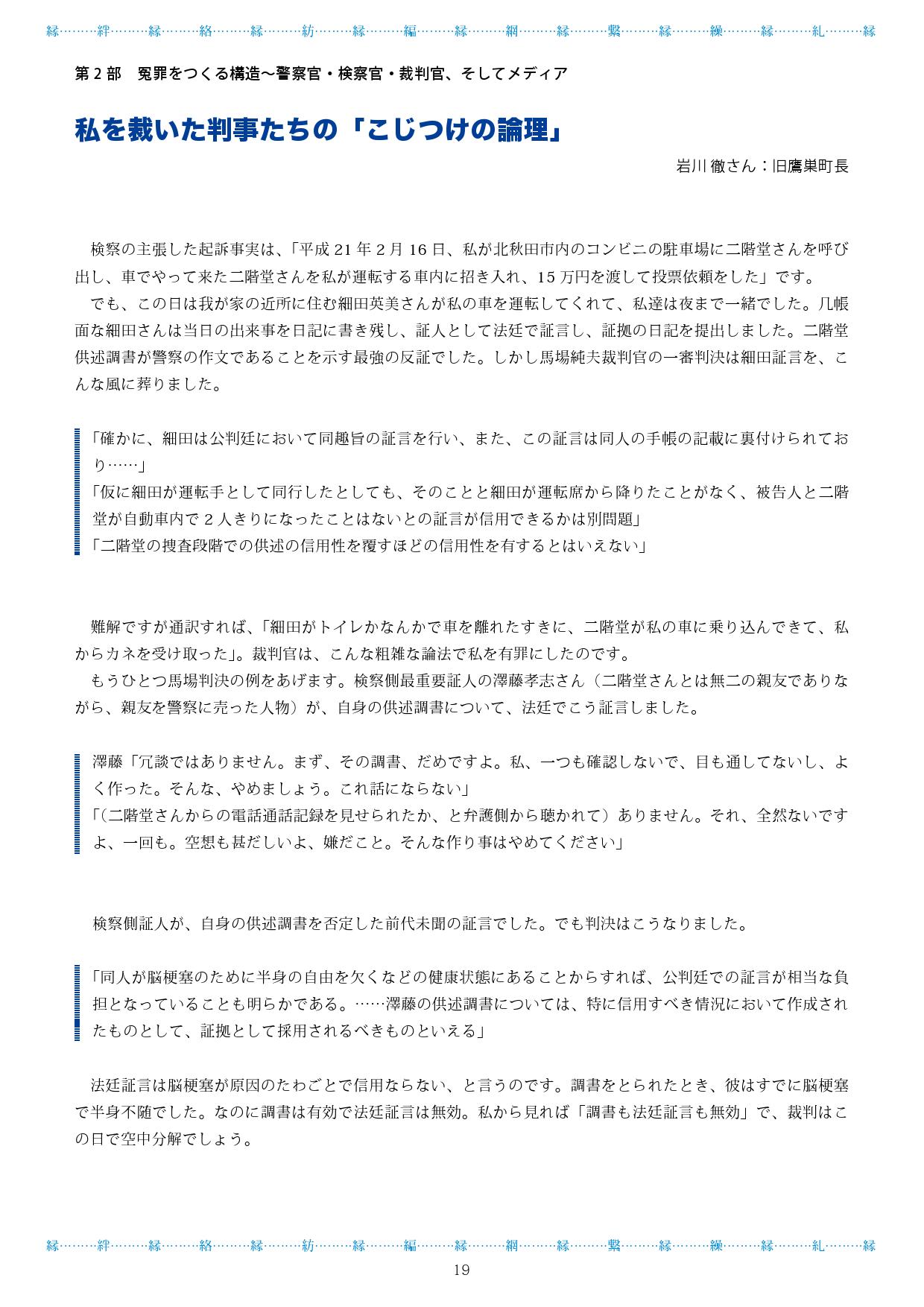 いずれも検察側に言わせれば“任意”のもとで採られた“信用できる”証言や供述調書でした。しかし、これらの証言や供述調書が検察側のストーリーにそった供述だったことを、今では、国民のだれもが知っております。