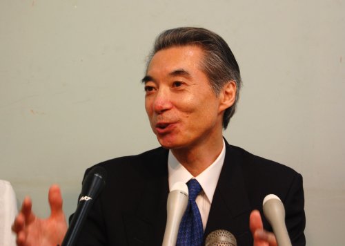 一年間の拘禁生活から解放された直後の岩川徹さんの記者会見(県庁記者会見室 2010年7月15日夜 撮影:大熊一夫)