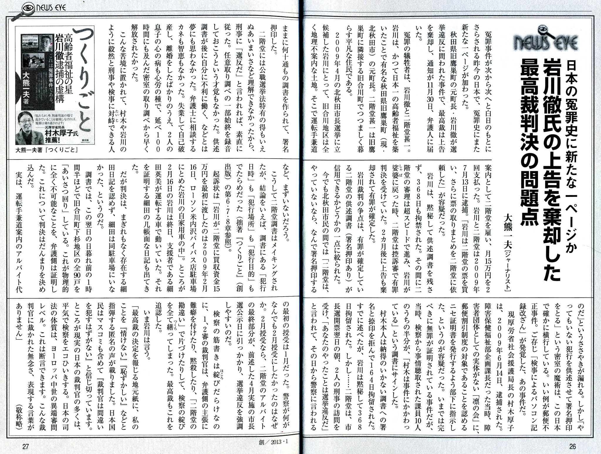 シンポに登場する『つくりごと 高齢者福祉の星 岩川徹 逮捕の虚構』は、創出版 へ